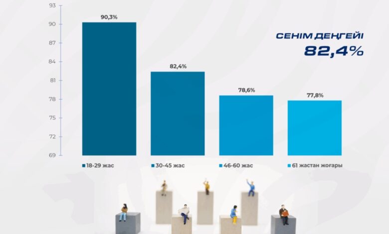 Ең жоғары деңгейде қолдау көрсетіп отырғандар – 18-29 жас аралығындағы қазақстандықтар (90,3%). Одан кейінгі орындарда 30-45 жастағылар (82,4%), 46-60 жастағылар (78,6%) және 61 жастан асқандар (77,8%) тұр.