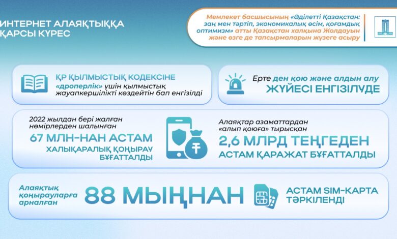 Цифрландыру жағдайында интернет-алаяқтық қылмыстарының саны күрт өсіп келеді. Азаматтарды қорғау үшін Ішкі істер министрлігі жүйелі шараларды жүзеге асыруда: ерте әрекет ету жүйелері енгізілуде, күмәнді қоңыраулар мен транзакциялар бұғатталады. Тек соңғы айларда ғана 2,6 млрд теңгеден астам қаржы ұрлығының алды алынды.