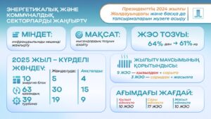 Президенттің тапсырмасын жүзеге асыру шеңберінде 2024 жылғы желтоқсанда Үкімет «Энергетикалық және коммуналдық секторларды жаңғырту» ұлттық жобасын (бұдан әрі – ұлттық жоба) бекітті, оның аясында ТКШ инфрақұрылымын жөндеу бойынша кең ауқымды науқанды ұзақмерзімді жеңілдікпен қаржыландыру басталды.