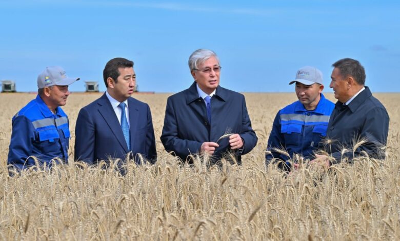Глава государства ознакомился с ходом уборочной кампании в Акмолинской области