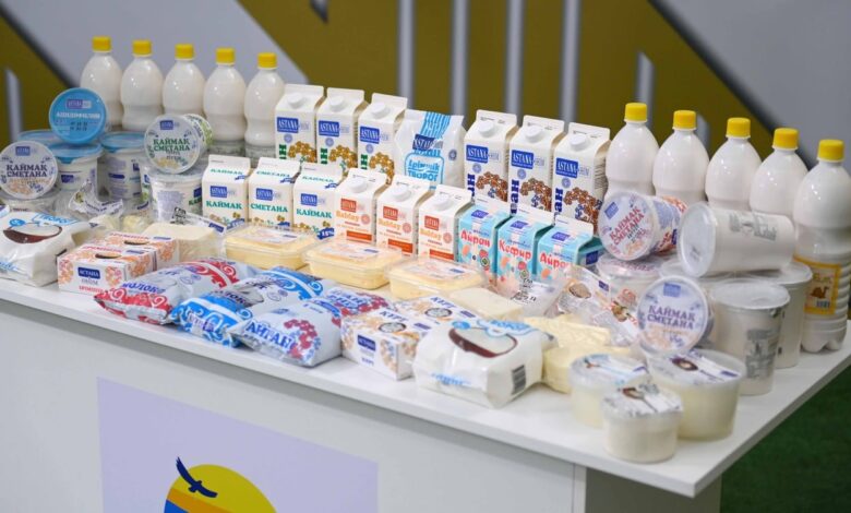 Касым-Жомарт Токаев осмотрел выставку производимой в регионе аграрной продукции, на которой были представлены полуфабрикаты, консервы, мясомолочные и хлебобулочные изделия