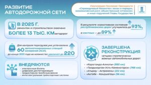 В марте 2024 года на заседании Национального курултая «Адал адам – Адал еңбек – Адал табыс» Президент Касым-Жомарт Токаев поручил охватить реконструкцией и ремонтом не менее 12 тыс. км автодорог.